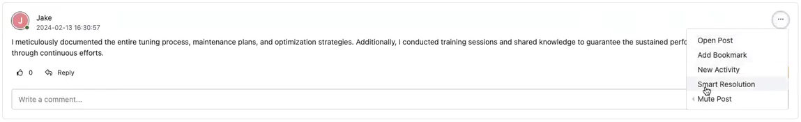 If you find a post in the ticket timeline that provides a resolution, simply click Suggest Resolution to generate a user-friendly guide in the ticket’s Resolution box.